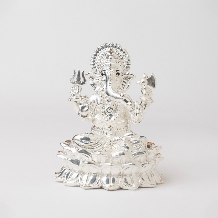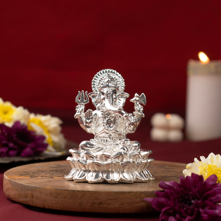 Crafted in 99.9% pure silver, this idol captures the serene presence of Ganesh with intricate detailing and a polished finish that blends traditional devotion with modern elegance. Compact and lightweight, it is perfect for your home temple, office desk, or as part of a meaningful gift.