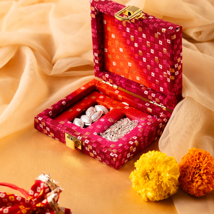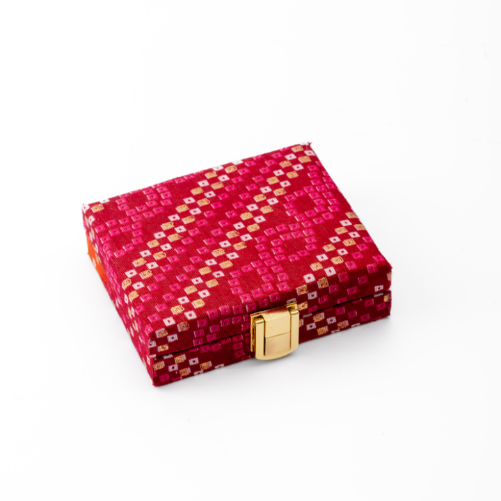 Packaging: Traditional bandhani keepsake box with gold-tone clasp