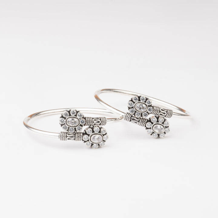 Sparkling silver kadas that bloom with festive charm.