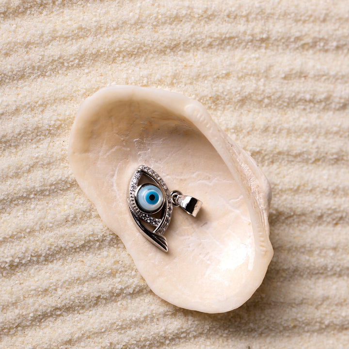 The Guardian Eye Sterling Silver Locket is an exquisite piece designed to captivate and protect. Crafted from 92.5% hallmarked sterling silver, the locket features a mesmerizing evil eye symbol, believed to ward off negative energy and bring good fortune. Adorned with a delicate border of sparkling stones, the intricate detailing enhances its elegance and charm. Whether worn as a daily accessory or a special talisman, this locket adds a touch of mystique and style to any outfit. Its sleek design and symbolic significance make it a perfect gift for yourself or a loved one.