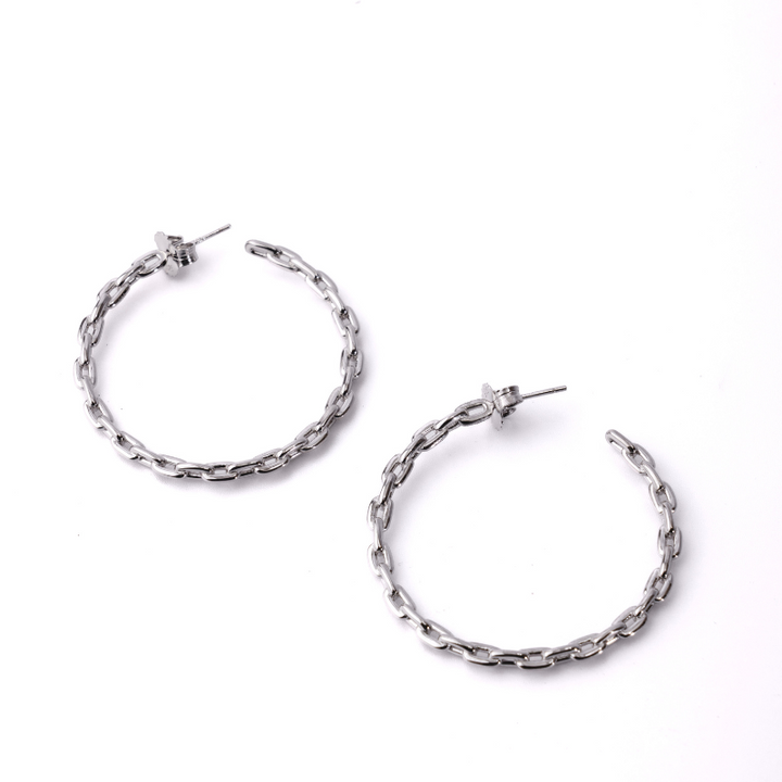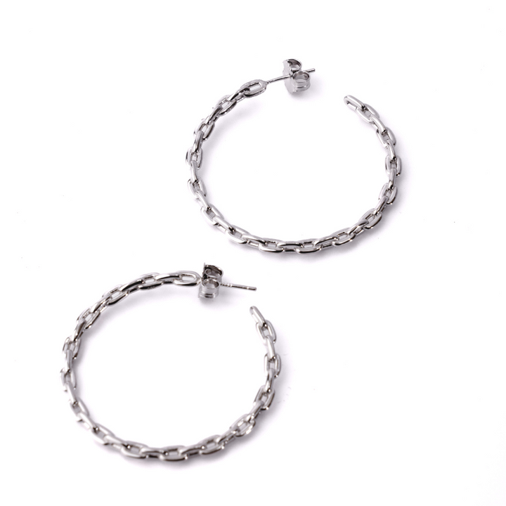 Minimal with a hint of rebellion, these open hoops are formed entirely from sleek chain links. Crafted in 92.5 hallmarked silver, the Link Loop Hoops bring a contemporary twist to classic hoops—perfect for those who like their accessories bold yet wearable, day to night.