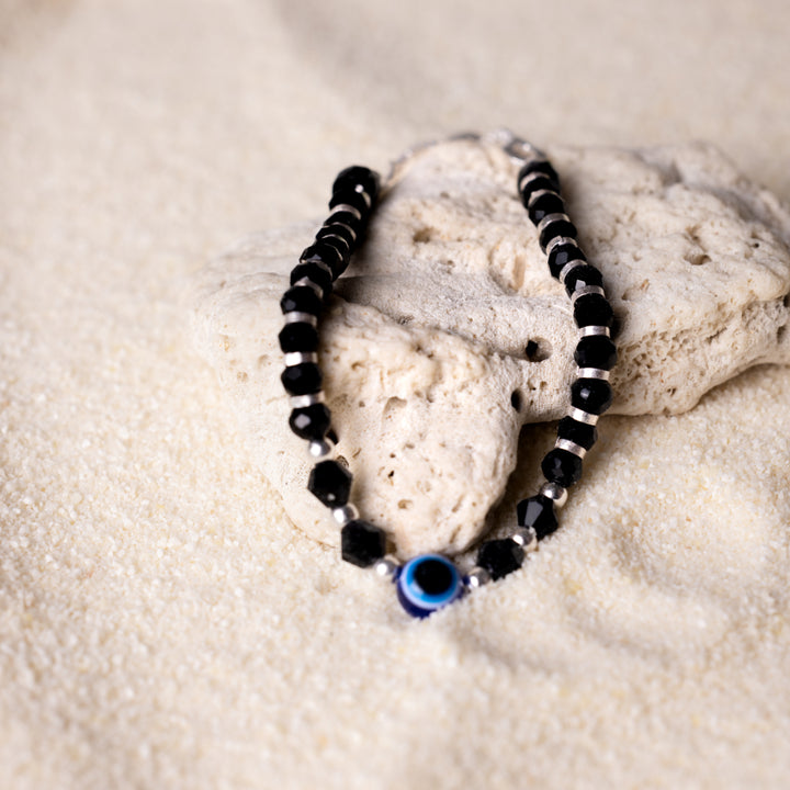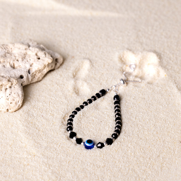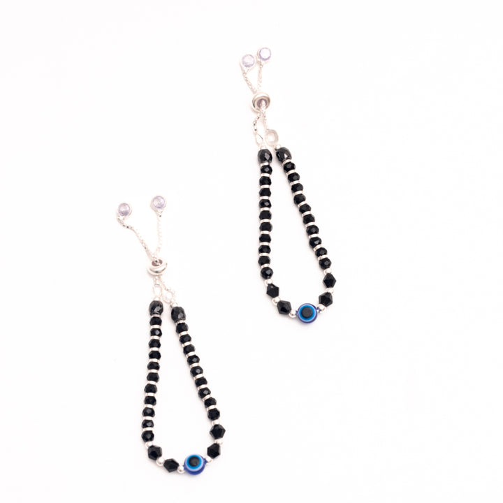 Celebrate tradition and protection with our Nazar Evil Eye Baby Bracelet Set. This pair of 2 lightweight bracelets are thoughtfully crafted with smooth, baby-friendly beads and adorned with a symbolic nazar charm. Rooted in Indian culture, the nazar is believed to shield against negative energy, making this set an ideal choice for babies. Designed for comfort, these bracelets are perfect for daily wear, ensuring that your little one is always surrounded by love and positive vibes.