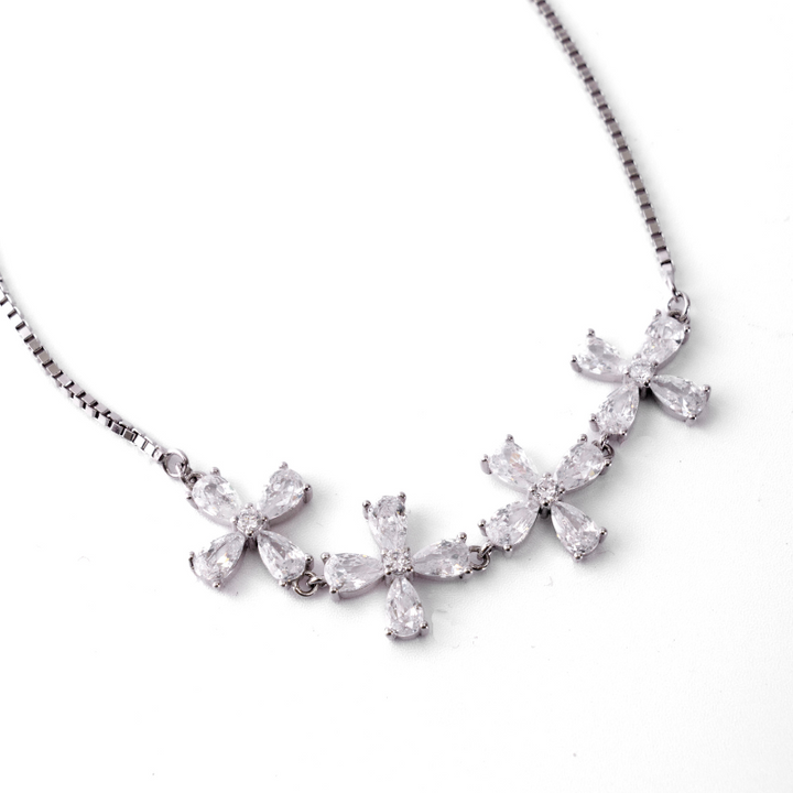 Crafted in 92.5 hallmarked silver, the Petal Poise Bracelet features a delicate arrangement of petal-shaped cubic zirconia. Its graceful floral silhouette and adjustable chain make it a charming gift for every elegant moment.
