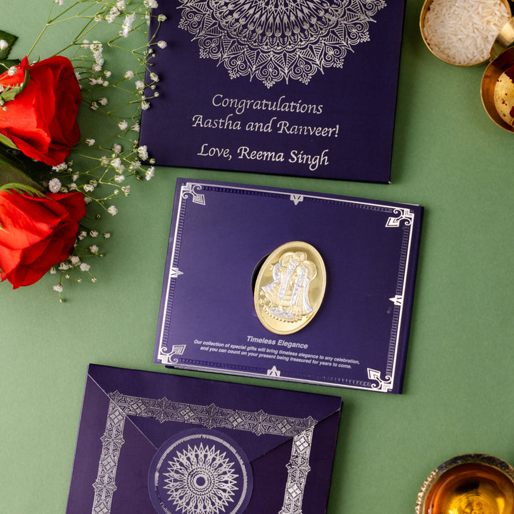 Share the timeless essence of love and devotion with our Silver Moments Card Set of Radha Krishna. Perfect for weddings, anniversaries, or special occasions, this set is a tribute to eternal bonds and harmony.