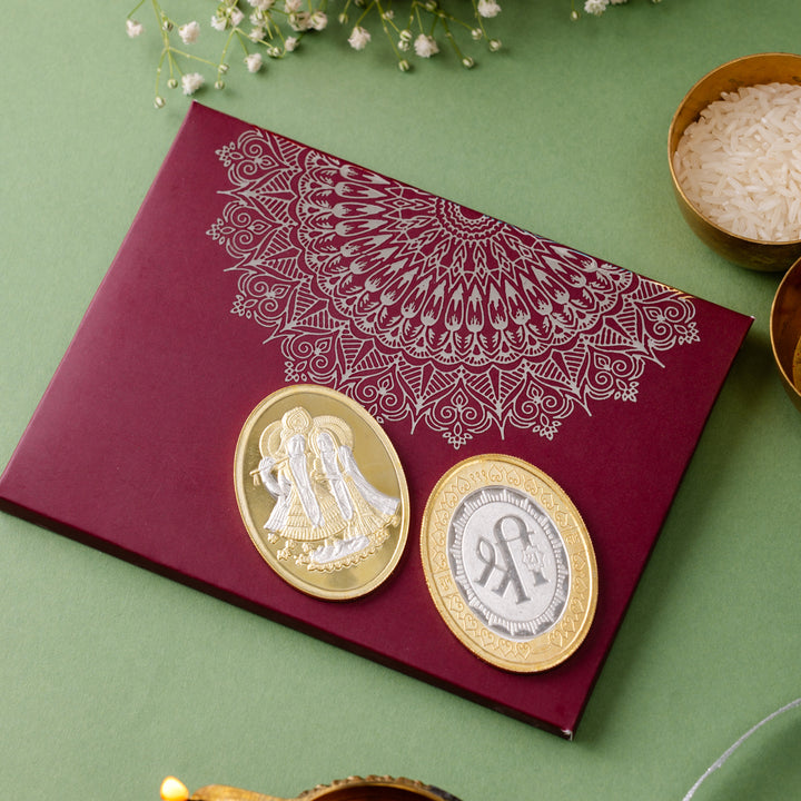 Featuring the beautifully engraved idol of Radha Krishna, this card set symbolizes pure love, unity, and spiritual devotion, making it a thoughtful gift for cherished moments.