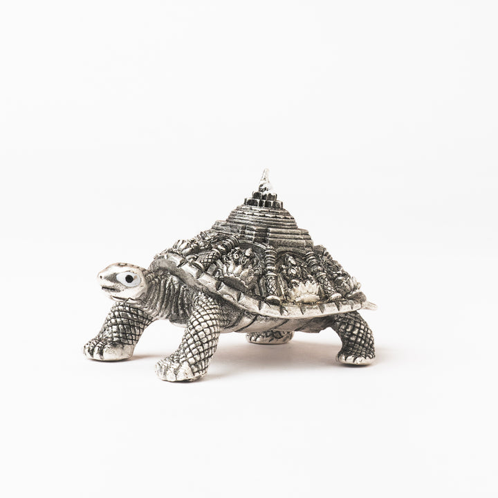 A silver tortoise of strength and stability, blessed with Ashtalakshmi and Sri Yantra for wealth and harmony