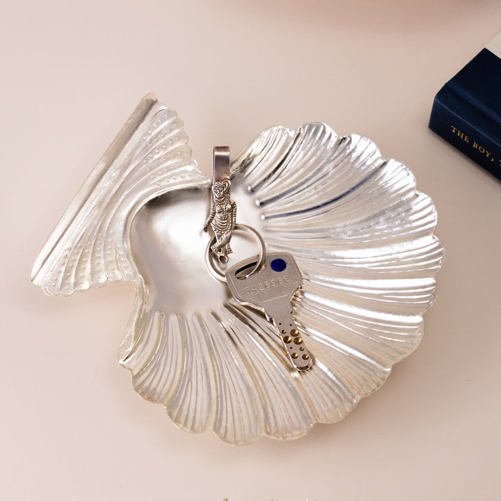 A stunning silver tray crafted in 92.5% pure silver, inspired by the elegance of ocean shells.