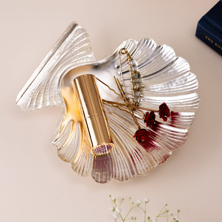 Inspired by the fluid beauty of seashells, this shimmering tray is as functional as it is graceful.